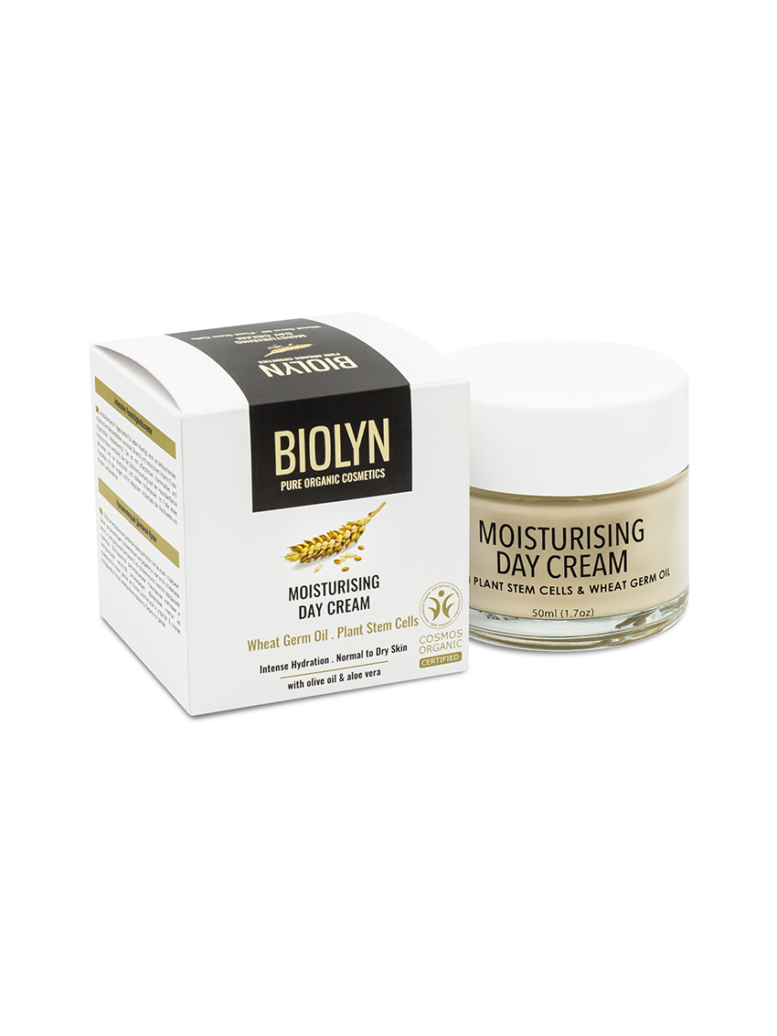 Balancing day cream for every skin type, rich in hydrating organic ingredients such as aloe, olive oil and natural vitamin Ε from wheat germ organic oil that provides hydration for up to 12 hours. Enriched with plant stem cells and hyaluronic acid that activate cell renovation on the surface of the skin, leaving it more supple and vivid.